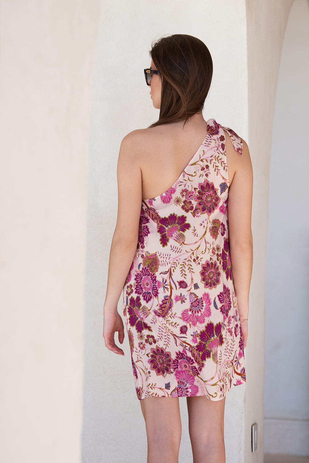 Sukienka z wiązaniem na jedno ramię. Wykonana z wysokogatunkowej wiskozy. Przepiękny print w letnim klimacie.